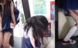 不登校の女子生徒に会いに、その親と話し合うために家庭訪問する女性教師。しかし、その最中におしっこ漏らしちゃうという動画です。ソファーの上で座ったまま漏らしちゃうので、放尿シーン自体は微妙。よく見えません。