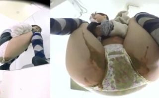 しかし、スマホに夢中だったからか、気づかずに追撃放屁。白パンティの中央に大きな茶色いシミが出来ちゃいましたw