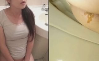 下痢便を漏らしちゃったお姉さんがパンツを投げ捨て、残りのウンコを捻り出す映像です。完全な水下痢ですね。おしっこしているのか、うんこしているのか分からないくらい、ジョボジョボと音をたてながら臭い下痢便を噴射していますw